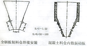 3、全混凝土料倉(cāng)及:在倉(cāng)內(nèi)應(yīng)敷設(shè)振動(dòng)板。